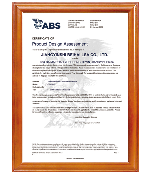 江陰市北海救生設備有限公司創(chuàng)建于2000年,坐落于江蘇省江陰市月城鎮白馬路58號,南瀕太湖、北臨長江、位于錫澄運河河畔,交通及地理位置十分便利。公司占地面積50000多平方米,現有員工200余名,其中博士1名,高級工程師3名,其他各類專業(yè)工程技術人員40余名...